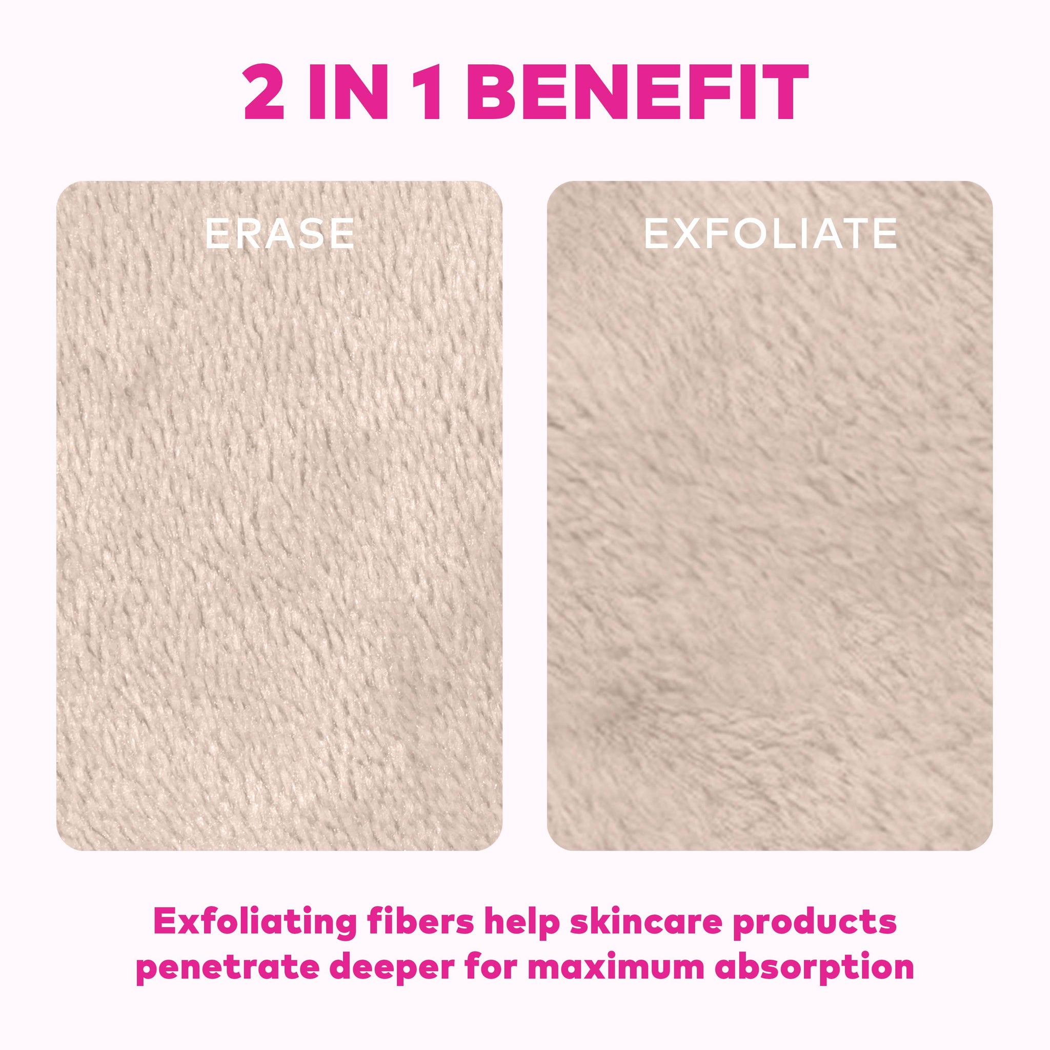 2 in 1 benefit: one side erases makeup & one side exfoliates skin.