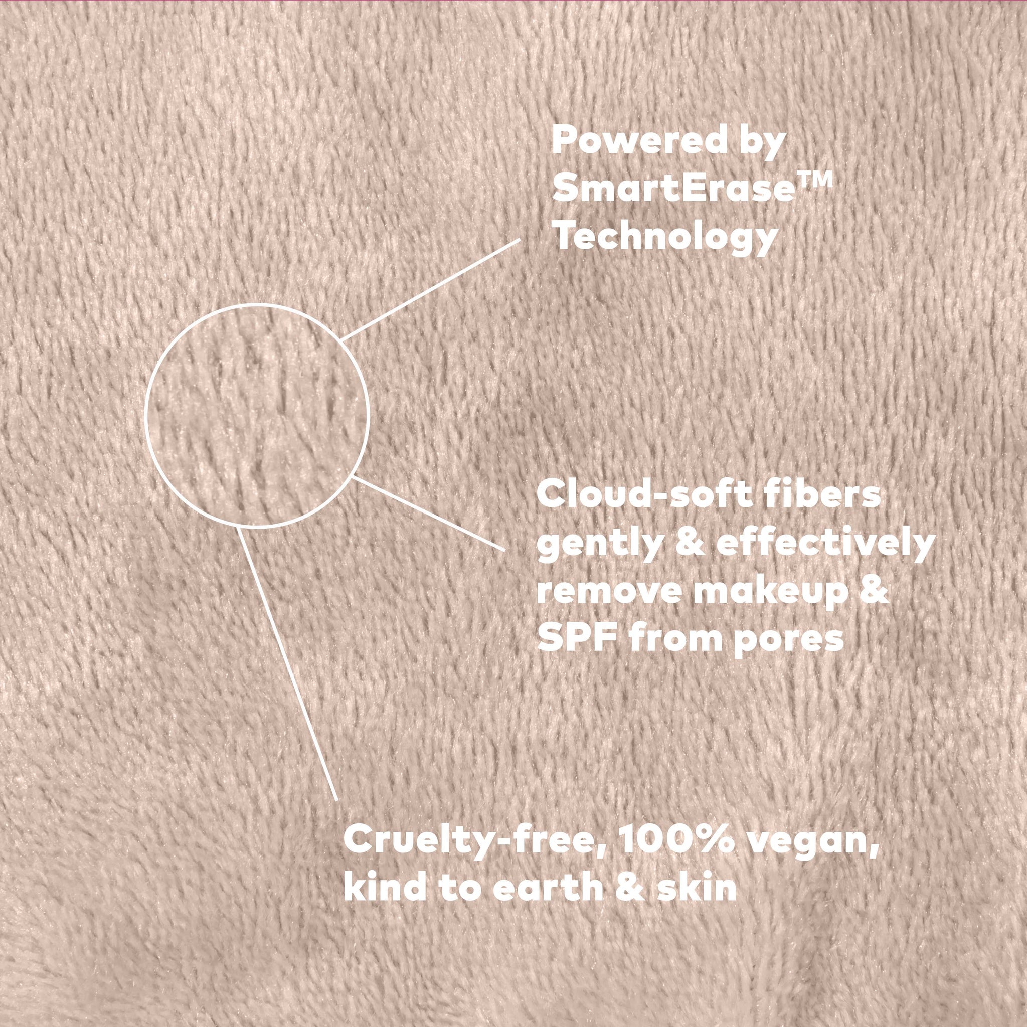 Erase all makeup with JUST WATER™ including waterproof. Water-activated, cloud-soft fibers gently & easily remove all makeup & sunscreen from pores.