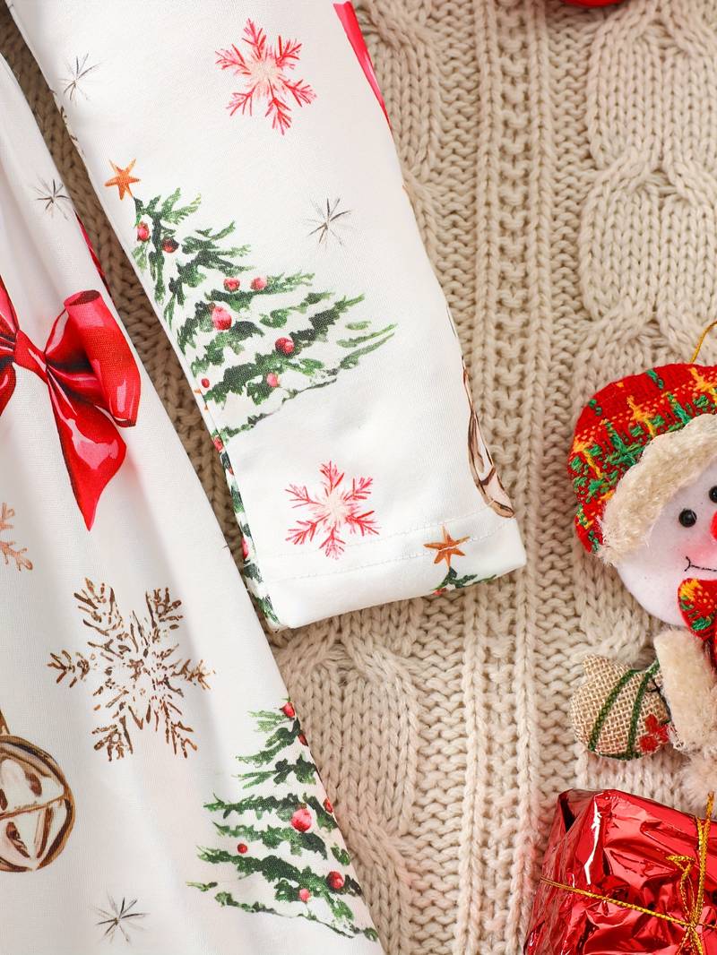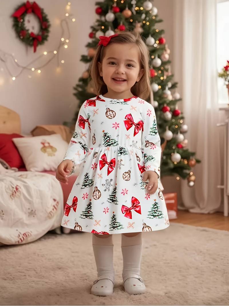 Christmas Tree and Bell Long Sleeve Dress for Toddler
