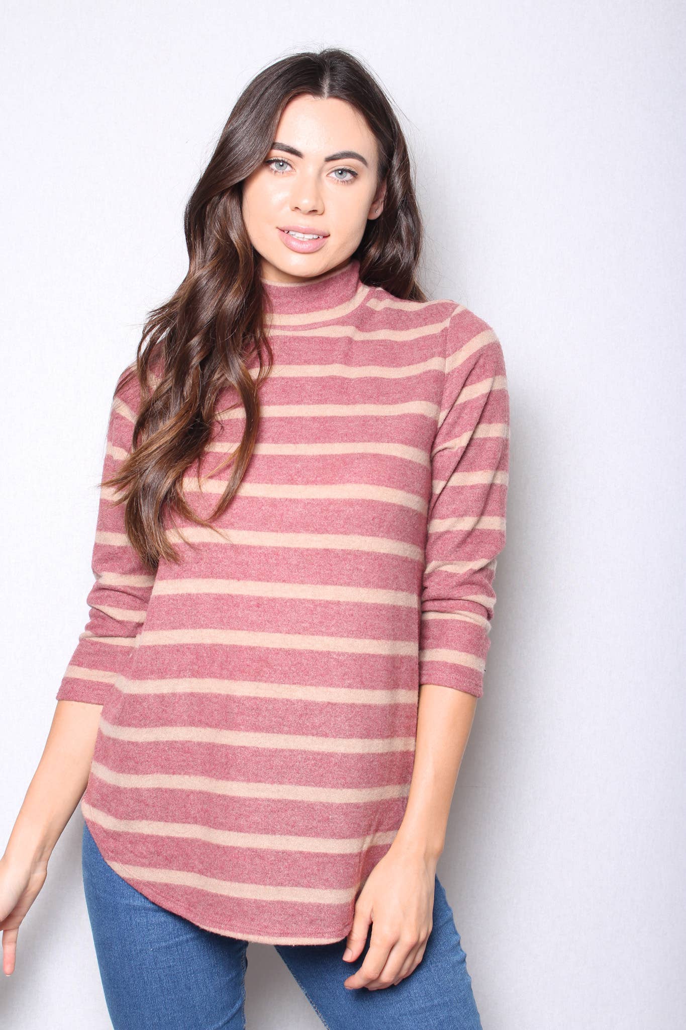 Women's Fuzzy Long Sleeves Stripe Pullover Sweater